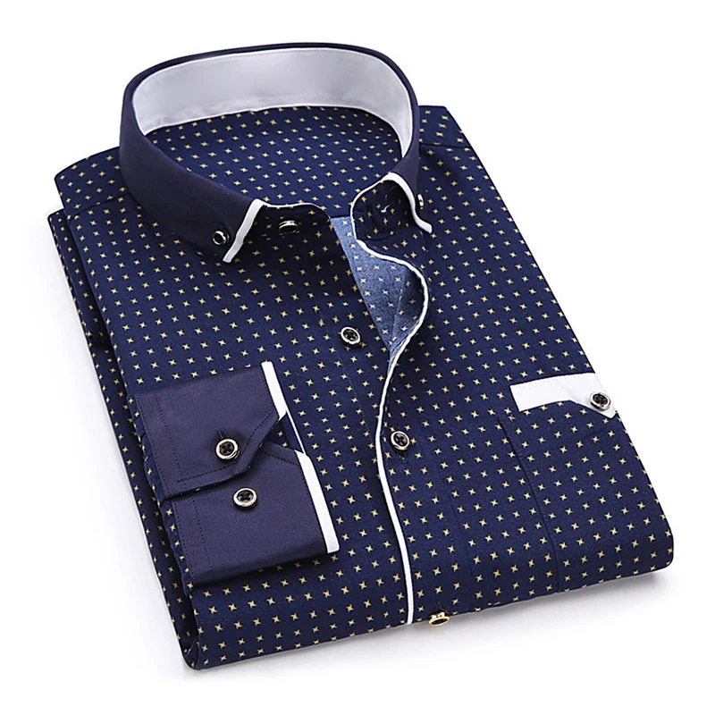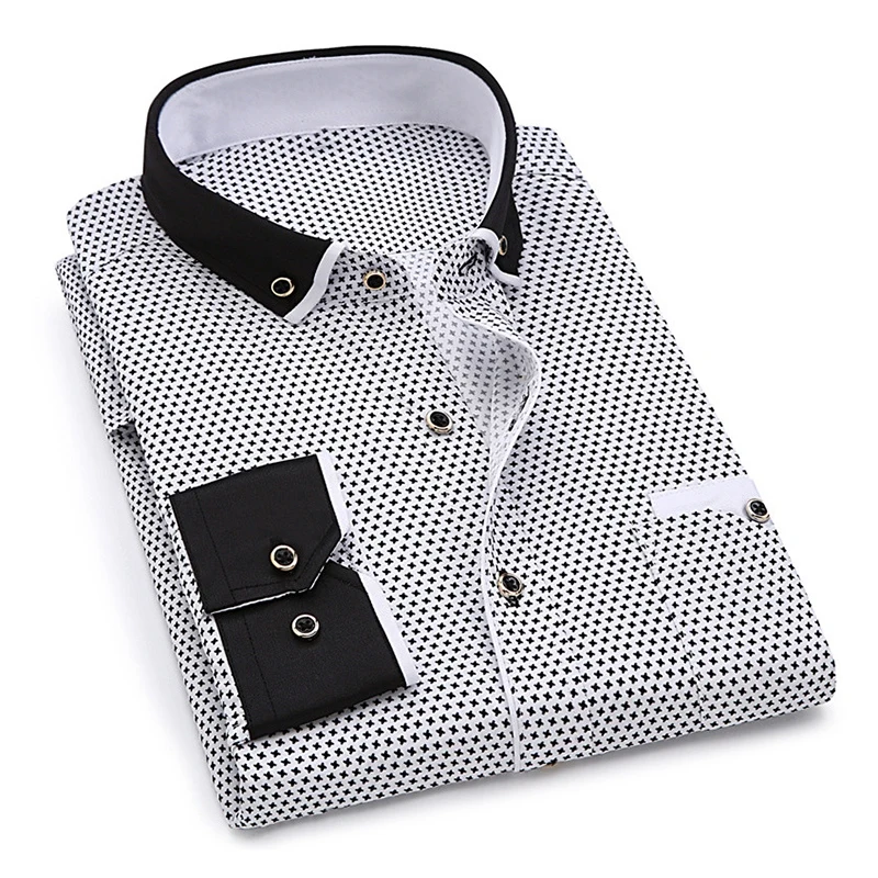 Men Fashion Casual Long Sleeved Printed shirt Slim Fit Male Social Business Dress Shirt Brand Men C