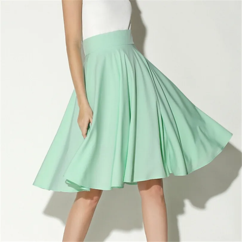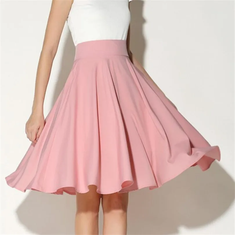 BEST Autumn Midi Skirt Women Clothing High Waist Pleated Ladies Skirts Back Zipper Soft Petticoat Elasti