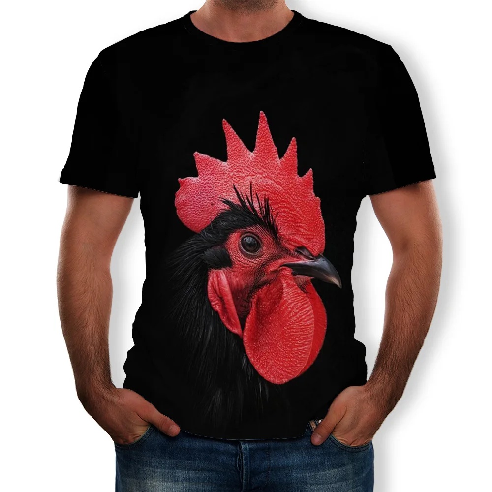 BEST New Mens Summer Tees Plus Size O-neck Short Sleeve T Shirt Chicken Head Printed T-shirt 3D Designer