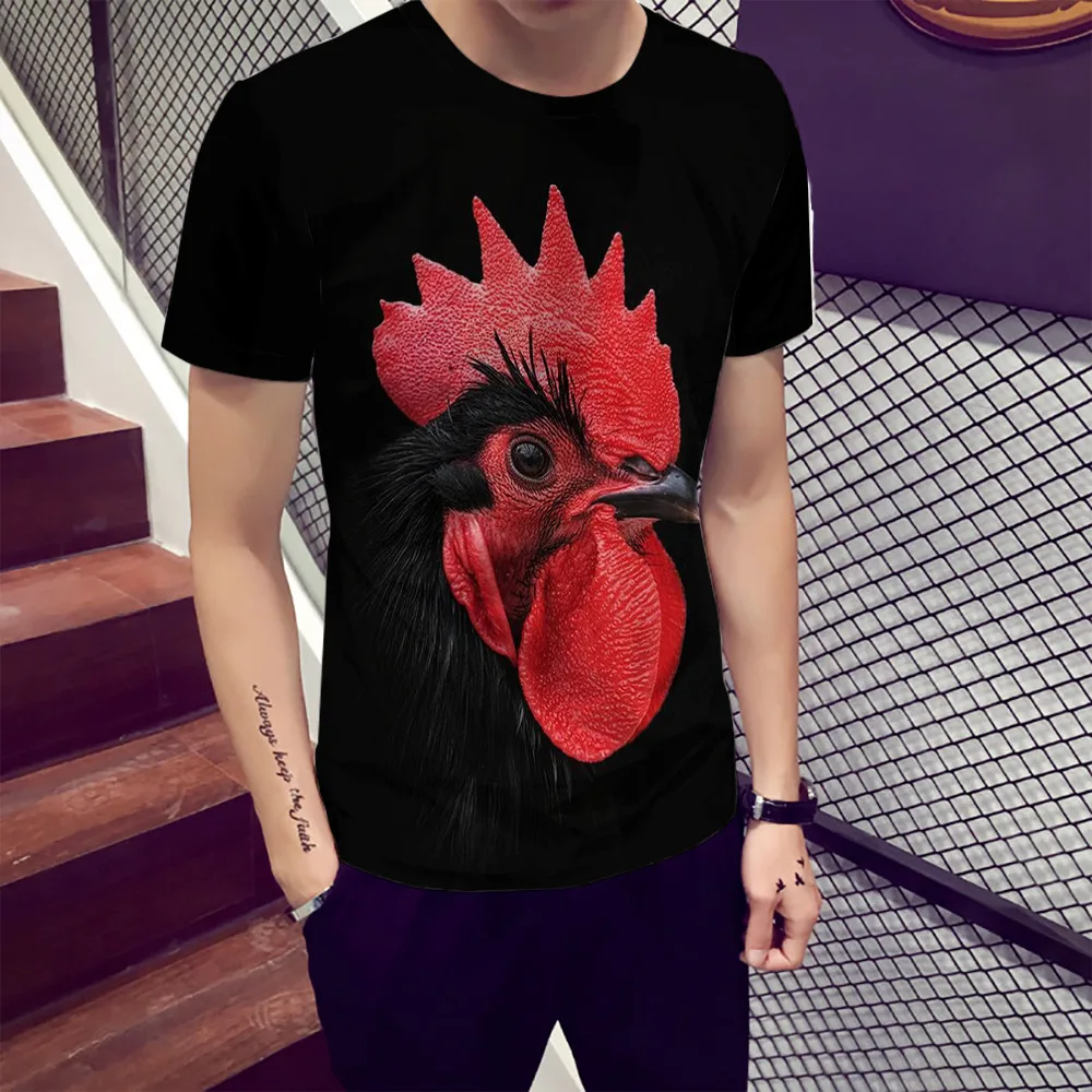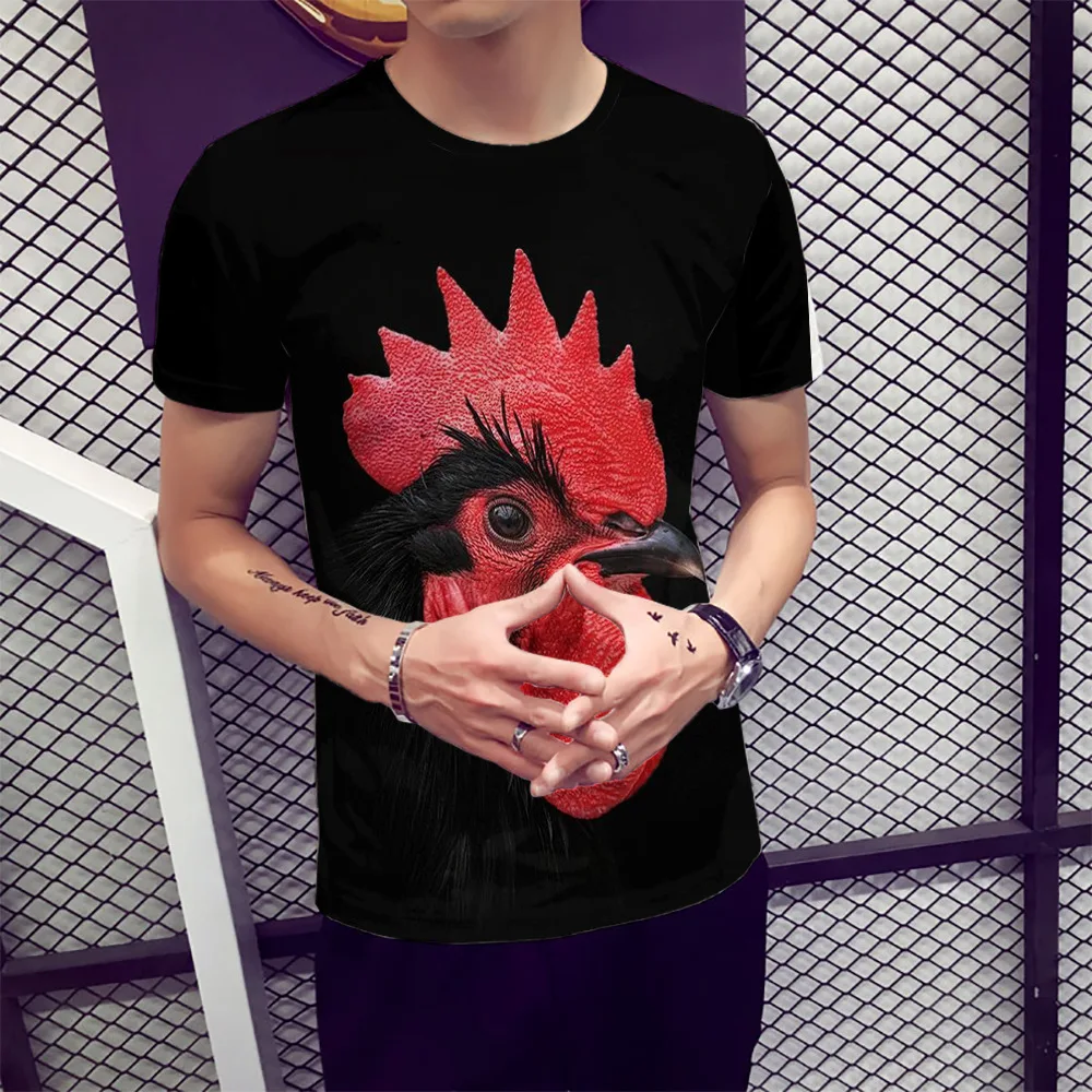 New Mens Summer Tees Plus Size O-neck Short Sleeve T Shirt Chicken Head Printed T-shirt 3D Designer
